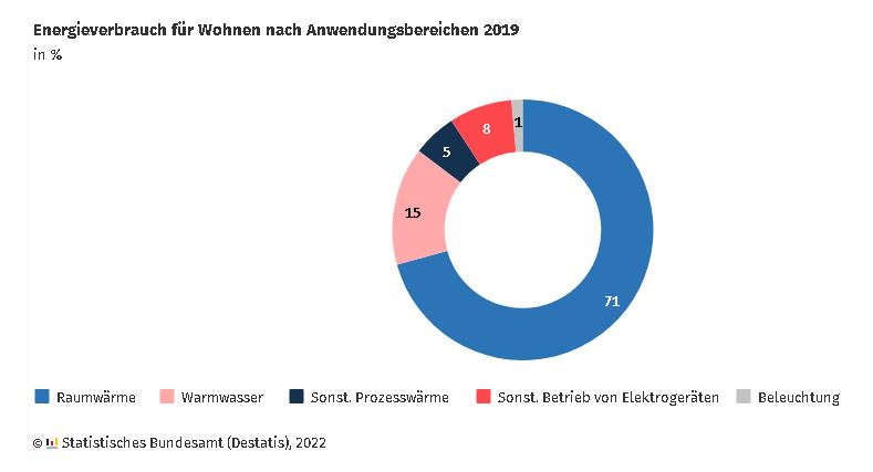 Mit 71% macht der Bereich der Raumwärme den größten Teil am Energieverbrauch eines privaten Haushaltes aus: