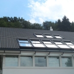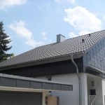 In Ulm-Unterweiler haben wir ein Asbestdach mit ca. 155 m² Dachfläche fachgerecht abgebaut und entsorgt. Anschließend wurde das Dach nach den Anforderungen der KfW gedämmt. Hier kamen Holzweichfaserplatten und eine Einblasdämmung aus Zellulose zum Einsatz. Das alte Dach hatte keine Dachüberstände. Aus optischen Gründen und zum konstruktiven Gebäudeschutz wurde Dachlattung verlängert, so das ein Dachüberstand entstanden ist.