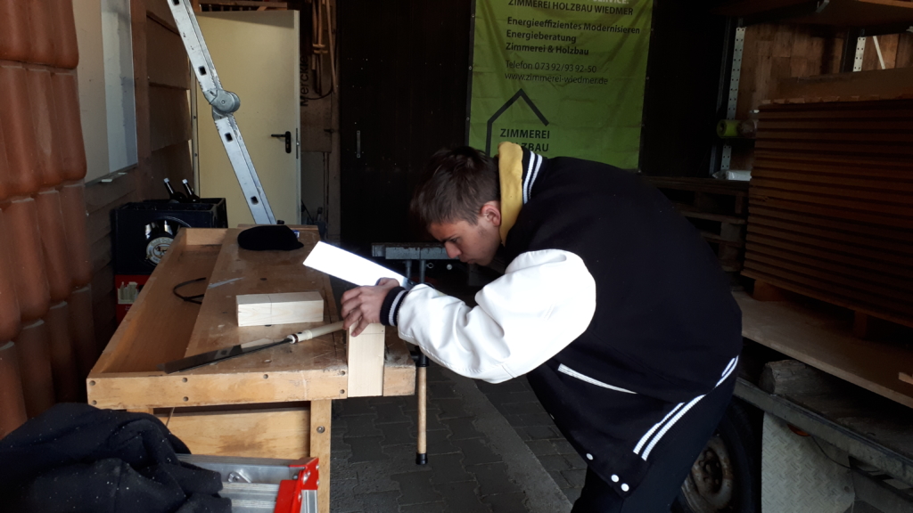 Im August hat Fabio seine Ausbildung zum Zimmerer bei uns begonnen. Damit bilden wir aktuell drei junge Menschen aus: Fabio im 1. Lehrjahr und Robin und Marc im 2. Lehrjahr.