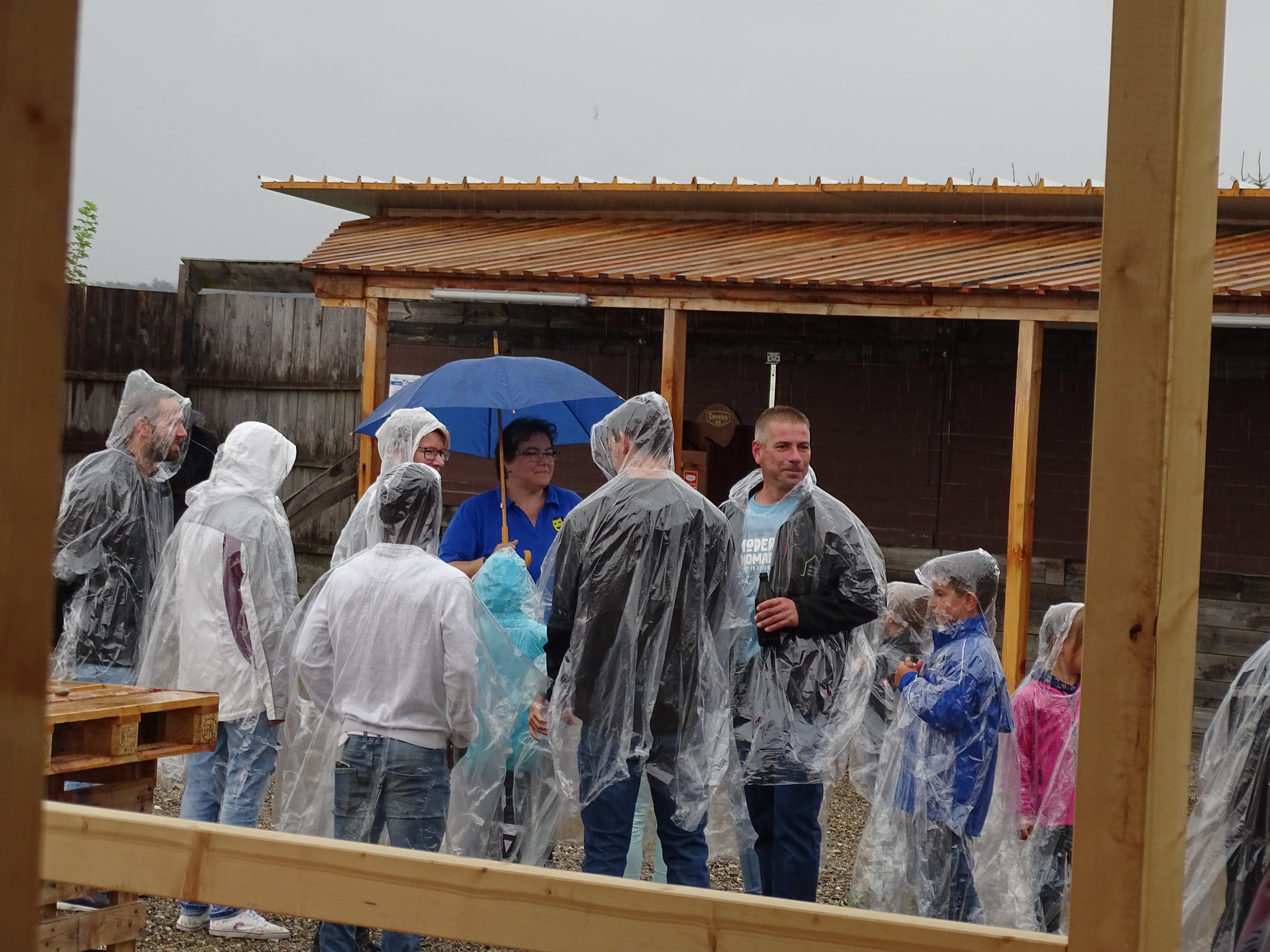 Wie wichtig die Überdachung ist, konnten wir dann am eigenen Leib erfahren. Genau zu Beginn unseres Sommerfestes schüttete es wie aus Eimern und wir bangten um die Vorstellung. Erst nach-