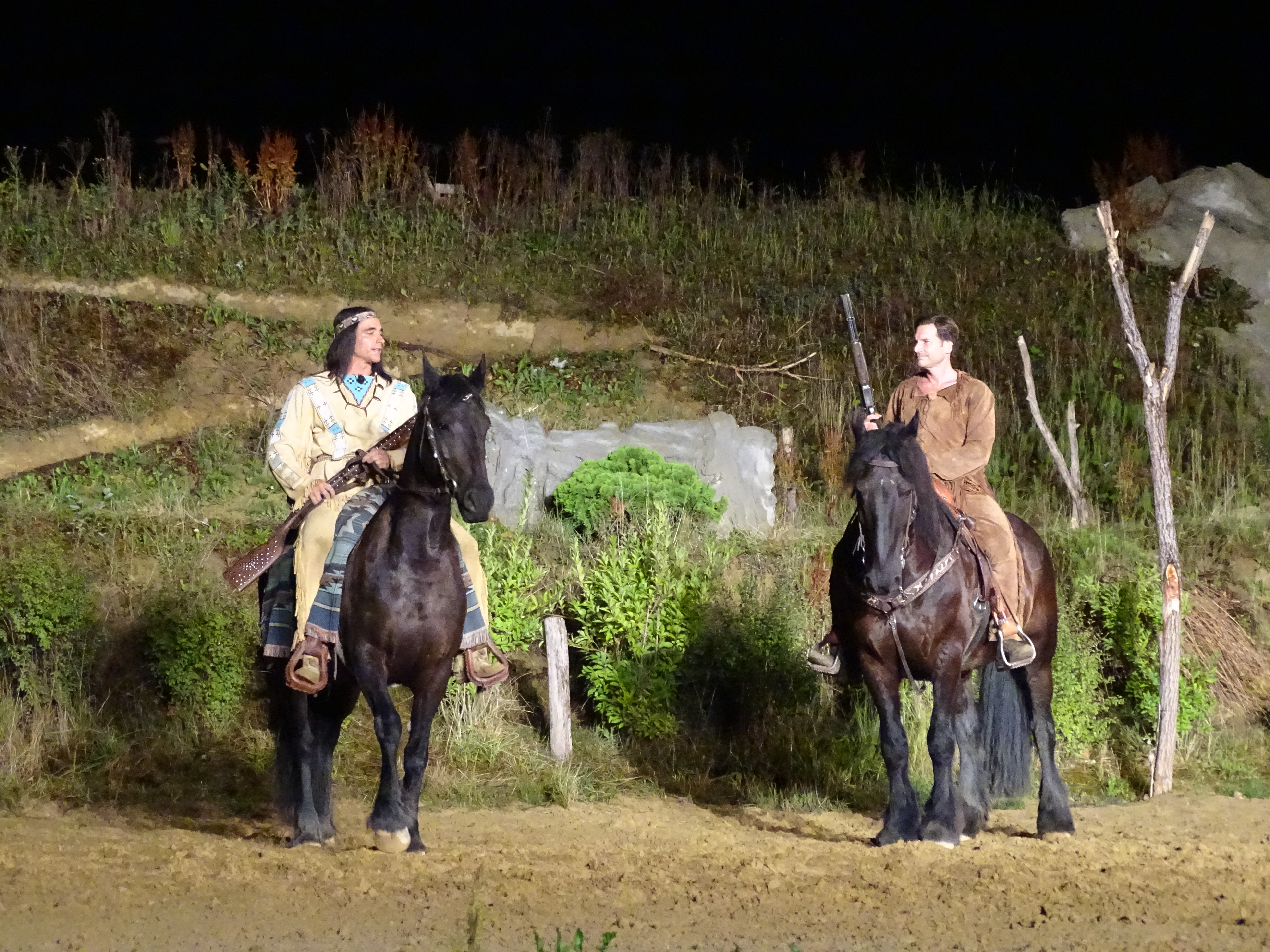 Pünktlich zu Beginn der Vorstellung hatte der Wettergott ein Einsehen mit uns und stoppte den Regen. So konnten wir trocken eine spannende Vorstellung genießen, die Groß und Klein begeisterte. Wer auch mal Lust auf ein Karl-May-Abenteuer in der Nähe hat, ist hier genau richtig: www.festspiele-burgrieden.de
