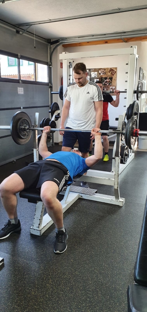 Unter Anleitung von Andreas Wiedmer, einem ehemaligen Gewichtheber, werden gemeinsam die einzelnen Muskelgruppen trainiert.